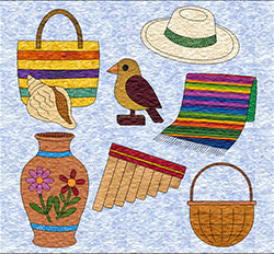 I thought it was about time for me to celebrate the country where I have lived most of my life: beautiful Ecuador! There is so much diversity within this small country, it is hard to limit its richness to one project. But here we go, with a few cultural icons, landscapes, and food. Finished size: 52 x 60"